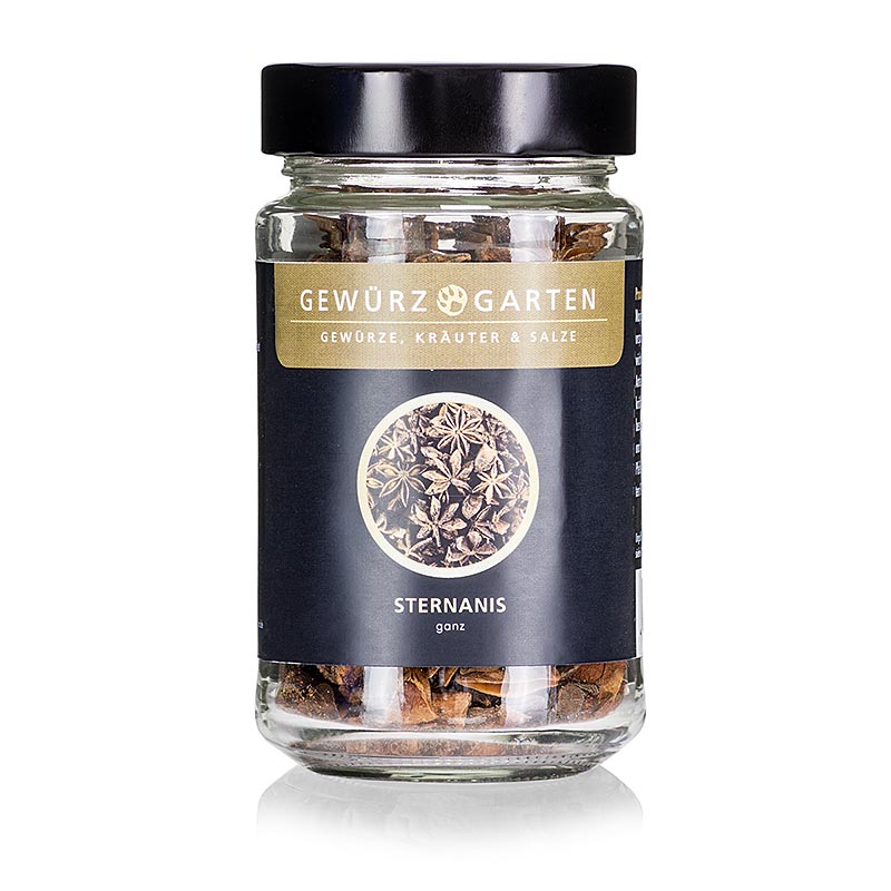 Sternanis ist nicht nur ein vielseitiges aromatisches Gewürz, sondern zudem auch ästhetisch sehr ansprechend. Die Frucht eines südchinesischen Magnolienbaums ist etwas bitter, aber ungleich feiner als der gewöhnliche Anis. Neben der Weihnachtsbäckerei und bei der Glühweinbereitung, findet Sternanis Verwendung bei Fisch, Meeresfrüchten, Geflügel und Gemüsen, insbesondere bei Tomatenzubereitungen. Er aromatisiert Desserts und ist zudem als wunderschöne Dekoration einsetzbar.