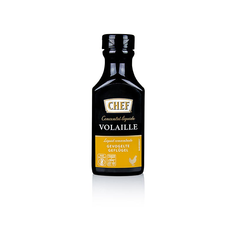 Flüssiges Konzentrat auf Hühnerbasis. Zutaten: Hühnerfleischkochsaft konzentriert 66% (Wasser, Hühnerfleischextrakt 4,5%, Hühnerextraktpulver 0,7%, Salz), Salz, Aromen, Zucker, Hefeextrakt, modifizierte Stärke, Zwiebelpulver, natürliche Aromen, Alkoholessig, weisser Pfeffer, Stabilisator (Xanthan). Heiß und kalt anwendbar. Vor Gebrauch gut schütteln. Verwenden Sie 5-50 ml zum Würzen; 30 ml / 1 l Wasser für Fond; 20 ml / 1 l Wasser für Bouillon. Trocken lagern und vor Wärme schützen. Nach dem Öffnen gekühlt bei maximal +5°C lagern und innerhalb von 4 Monaten verbrauchen. Hergestellt in Dänemark. Eigenschaften: glutenfrei.