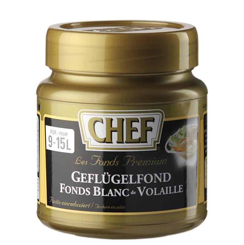 Dieser helle Gefügelfond aus der Chef Fond Premium Linie, hat einen sehr intensiven Geflügelgeschmack. Damit können Sie aufmontieren, aromatisieren, abrunden oder garziehen. Der Fond ist besonders für weiße/helle Saucen einsetzbar und kann kalt verarbeitet werden. Chef Premium Fonds sind mit originären Zutaten und Gewürzen bei niedrigen Temperaturen unter Vakuum einreduziert, sie sind konzentriert und von purem, authentischen Geschmack. Alle Fonds sind deklarationsfrei, Espuma geeignet und können auch in kalte Flüssigkeiten eingerührt werden. Sie sollten nach dem Öffnen bei max. 4°C aufbewahrt und innerhalb von 12 Wochen verbraucht werden.
