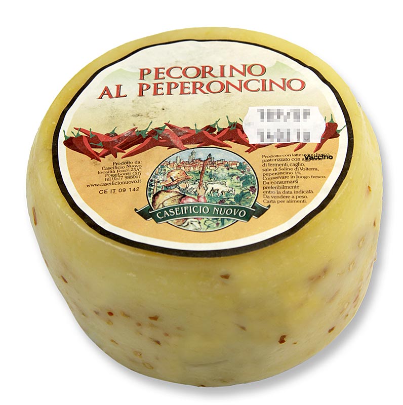 Hartkäsezubereitung mit Chili, 45% Fett in der Trockenstufe. Zutaten: pasteurisierte SCHAFSMILCH, 1% Chili, LAB, MILCHSÄUREBAKTERIEN, Salz. Kunststoffüberzug nicht zum Verzehr geeignet. Bitte beachten Sie, dass nach dem Öffnen eine kurze Trockenzeit nötig ist. Eine eventuelle natürliche grüne Schimmelbildung ist möglich und unbedenklich. Einfach abbürsten und gegenbenenfalls abwischen. Kühl bei +2°C bis +7°C lagern. Hergestellt in Italien. Eigenschaften: Eiweiß aus tierischer Milch.