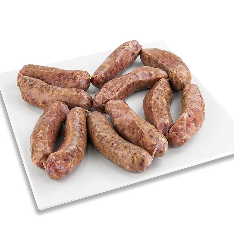 Frische, pikant gewürzte Schweinswurst, nach Art einer Bratwurst. In Italien wird das aus der Pelle gedrückte Brät gerne als Beilage von Pastasaucen oder Risotto verwendet. Die Salsicce eignet sich auch hervorragend zum Grillen. Unser Preis basiert auf dem angenommenen Gewicht von 1 KG