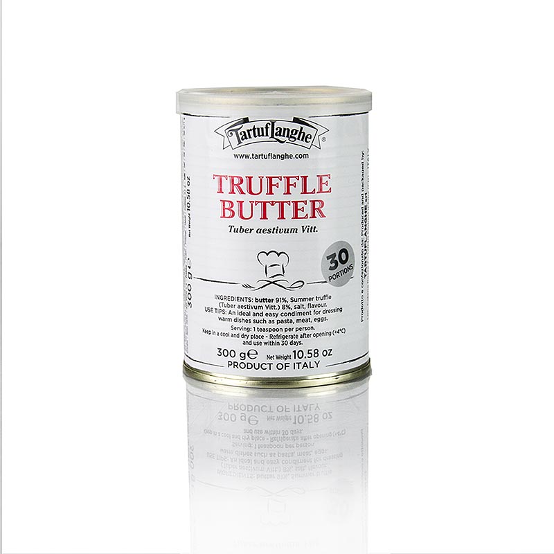 Trüffelbutter. Zutaten: 91% BUTTER, 8% Sommertrüffel (Tuber Aestivum Vitt.), Salz, Aroma. Dosierung: 1 Teelöffel pro Person. Reicht für 30 Portionen. Kühl & trocken lagern. Nach dem Öffnen im Kühlschrank bei +4°C lagern und innerhalb von 30 Tagen verbrauchen. Produkt aus Italien.