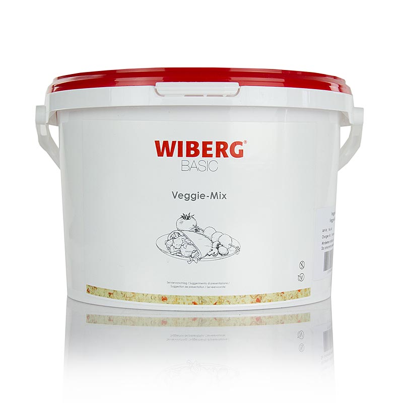 Zutatenmischung auf Weizen- und Sojabasis für vegane und vegetarische Bratlinge. Zutaten: WEIZENEIWEIß, SOJAEIWEIß, Speisesalz, Karotten, Kartoffelstärke, Zwiebel, Gewürze, Dextrose, natürliches Aroma, Rapsöl, Gewürzextrakt. Dosierung: die gewünschte Menge Veggie-Mix im Verhältnis 1:1 mit Wasser anrühren, mit 5% Öl verfeinern und ca. 30 Min. quellen lassen; in die gewünschte Form bringen und nach Wunsch zubereiten; nach Belieben können bis zu 30% Tiefkühlkonserven- oder Frischgemüse sowie Käse und Gewürze zugegeben werden. Geschlossen und trocken lagern. Eigenschaften: Laktosefrei, Vegan.