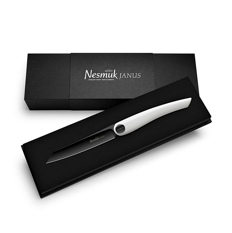 Nesmuk Janus Klappmesser (Folder), 202mm (115mm geschl.), weißer Klavierlack, 1 St