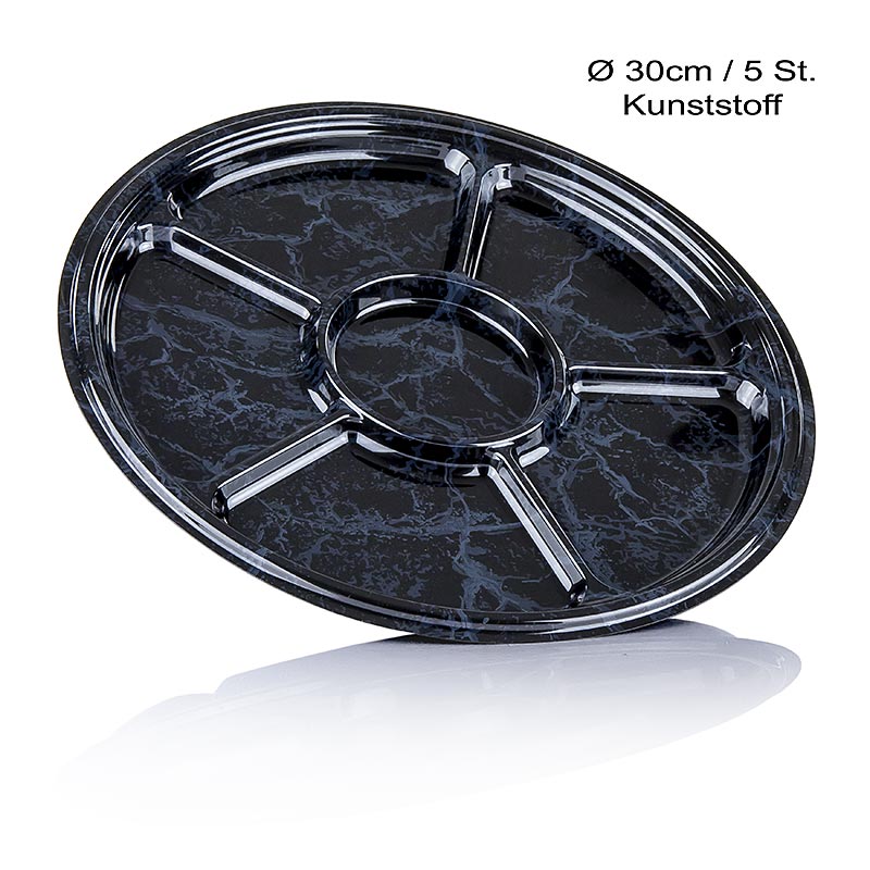 Einweg Teller, Kunststoff, schwarz mamoriert, 6 Segmente, ø 30cm, 5 St