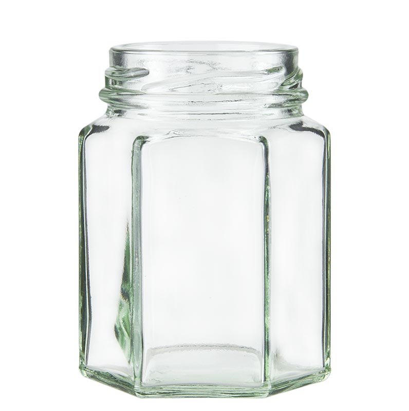 Glas, sechseckig, 110 ml, 48mm Mündung, ohne Deckel, 1 St