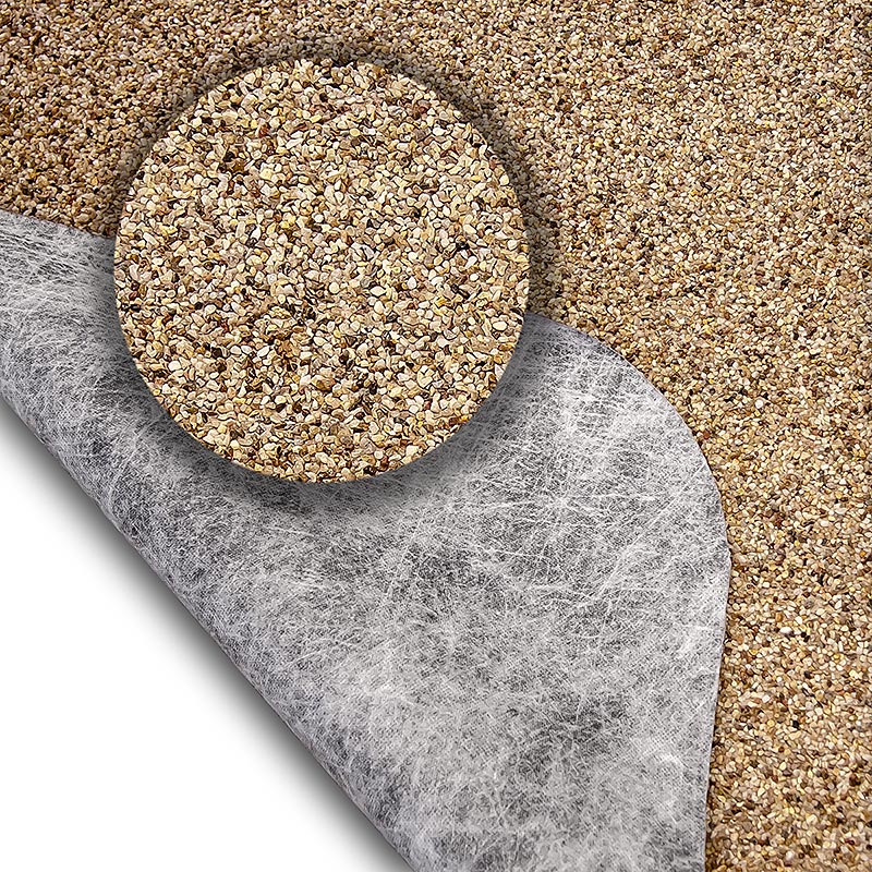Schutzmatte für Balkon und Terrasse 150 x 100 cm Matte ( aufrollbar ) aus echten Steinen mit rutschfestem Kunststoff überzogen. Wasserfest und Fett abweisend. Schützt Ihren Balkon und den Terrassenbelag.