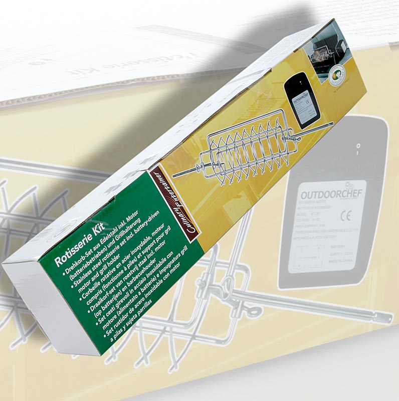 Ideal für den Sonntagsbraten oder für das große Grillgut auf Ihrer nächsten Grillparty. Der Drehkorb aus Edelstahl wird durch einen Motor mit Batterien angetrieben. Geeignet für die Outdoorchef Gasgrills Auckland, Perth und Canberra. Stablänge 76cm; Aufliegfläche ca. 70cm.