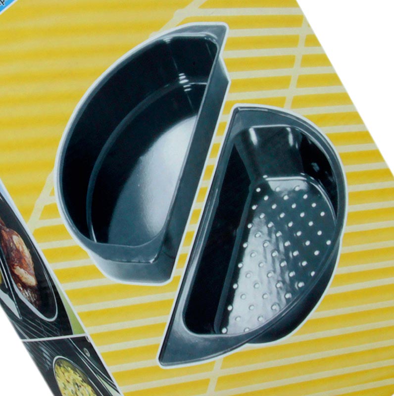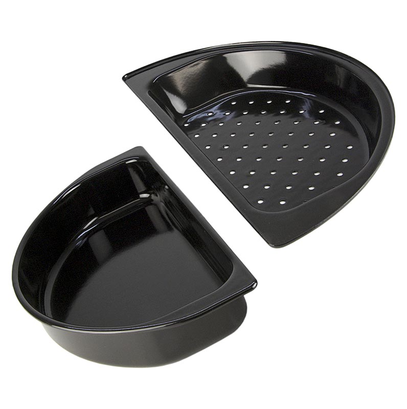 Die beiden emaillierten Pfannen sind vielseitig einsatzbar. Der perforierte Teil kann zum Garen von Gemüse und Dünsten von Fisch verwendet werden. In der geschlossenen Pfanne können Sie Gratins, Bratkartoffeln oder kleinere Appetit- Happen zubereiten. Für alle Kugelgrills.