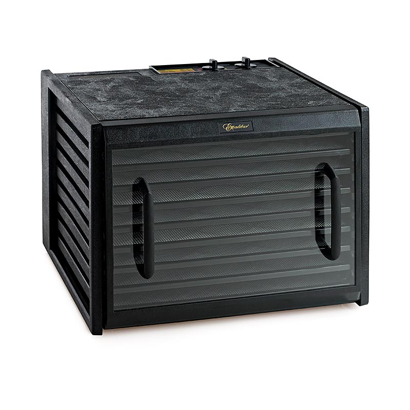 Trocknen in Rohkost-Qualität (unter 40° C). Riesige Kapazität und gleichmäßiges Trocknen. Wer nicht nur Trockenfrüchte, sondern auch rohköstliches Gebäck herstellen möchte, schwört auf den Excalibur-Trockner. Sein horizontaler Luftstrom erlaubt es z. B. Fruchtpürees fein auszustreichen und zu Fruchtleder zu trocknen. Der starke Lüfter gewährleistet eine besonders gleichmäßige Trocknung, ohne dass Sie immer wieder die Gitter tauschen müssen. Generell ist die Temperatur zwischen 30° und 70° verstellbar.