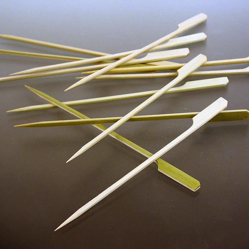 Aus Bambus-Holz lassen sich sehr feine und von der Textur her angenehme Spieße fertigen. Diese Spieße lassen sich durch ihr Blattende gut greifen. Ideal für größere Saté-Spieße.