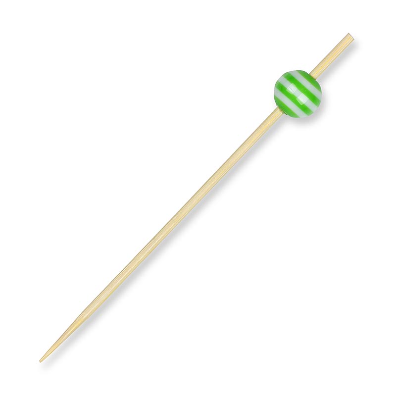 Holz-Spieße, mit "Kristallkugel" grün/weiß gestreift, 9cm, 100 St