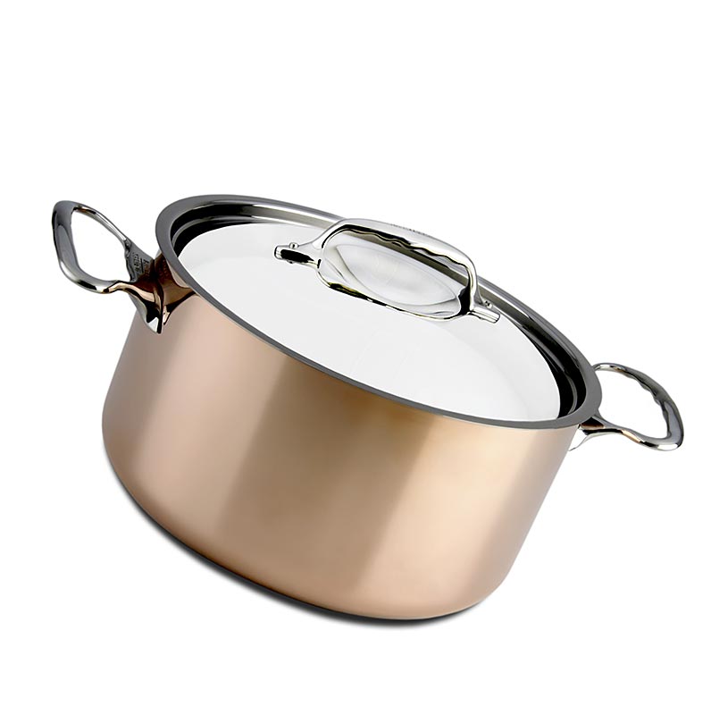 Bratentopf: 13cm hoch, 5,4 Liter Fassungsvermögen. Die "Inocuivre" Serie von de Buyer verbindet die besten Eigenschaften von Kupfer und Edelstahl. Die Kochgeschirre sind mit 2mm starken Wandungen aus 90% Kupfer und 10% Edelstahl gefertigt. Edelstahl sorgt für einfachen und hygienischen Gebrauch. Kupfer, mit exzellenter Wärmeleitfähigkeit, garantiert gleichmäßige Hitze vom Boden bis zum Rand und damit das beste Gelingen. Ihre kulinarischen Kreationen werden nicht zerkocht, sondern auf den Punkt gegart. Die Aromen kommen zur vollen Entfaltung, der "Biss" ist angenehm und wertvolle Vitamine bleiben erhalten. Geeignet für alle Herdarten, einschliesslich Induktionsherde.