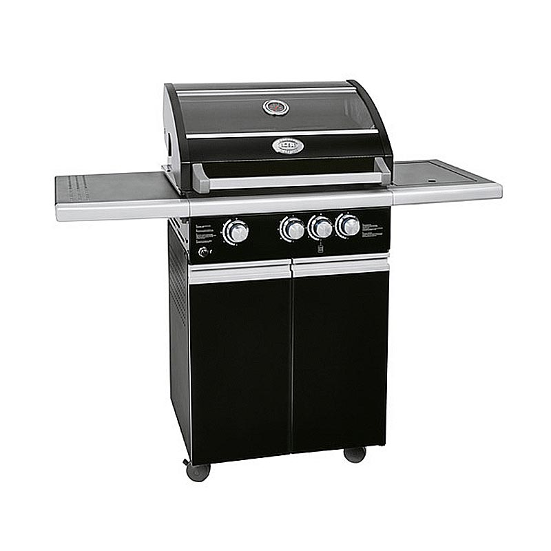 Gasgrill mit 3 Hauptbrenner ( je 5,3 kW ) Seitenbrenner ( 3.8 kW ) Hauptgrillfläche 65x48 cm, Warmhalterost 65x15 cm Hochleistungsbrenner aus Gusseisen mit Jet Flame Zündsystem Deckel mit Glaseinsatz sorgt für praktischen Einblick in den Garraum Großes Deckelthermometer ( Anzeige in °C und °F ) Gehäuse aus pulverbeschichtetem Stahl Stauraum für Gasflaschen bis 11 kg DE Abmessung L 87 x B 67 x H 98 cm
